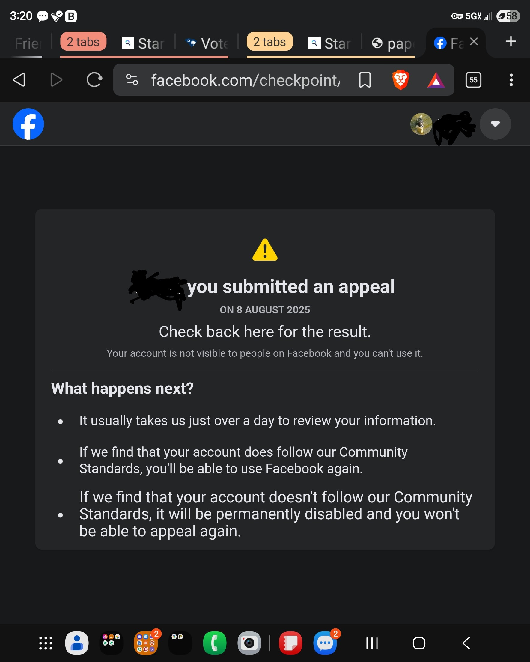"I have a concern regarding my appeal to get my account back after it was disabled - Reddit" https://www.reddit.com/r/facebook/comments/1lyah2w/i_have_a_concern_regarding_my_appeal_to_get_my/